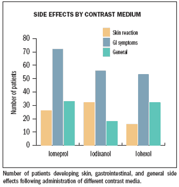 Intravenous iodinated contrast agents are generally safe. Though the frequency of side effects has fallen significantly since the introduction of nonionic, monomeric contrast agents,1 however, side effects remain an important issue.