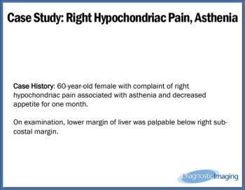 Case History: 60-year-old female with right hypochondriac pain, asthenia and decreased appetite.