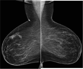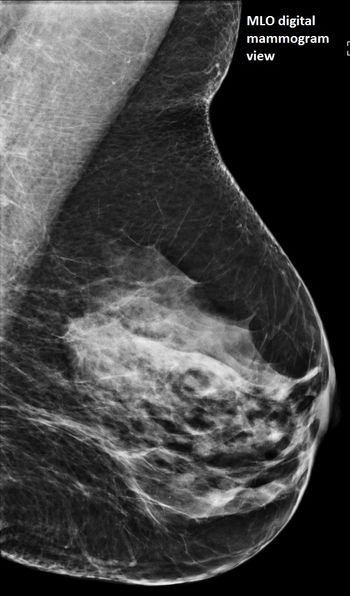 50-year-old patient presented for screening mammogram. Extremely dense breast tissue was noted.