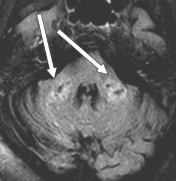 Images can show indications of rare condition that can affect white brain matter in patients who test positive for the virus.