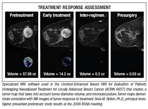 Preliminary results from American College of Radiology Imaging Network Trial 6657 show that MRI estimates residual breast cancer disease area better than clinical exams or mammography.