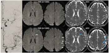 In the study of 119 patients who had endovascular treatment for intracranial atherosclerotic stenosis, multivariable analysis revealed that post-op ischemic brain lesions on diffusion-weighted magnetic resonance imaging (MRI) were 3.6 times more likely to occur in patients who smoke cigarettes and 2.9 times more likely in patients who had multiple operative attempts.
